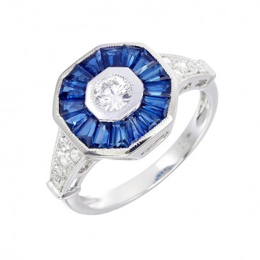 Bague Asscher Or Blanc 750°/°° Saphirs & Diamants